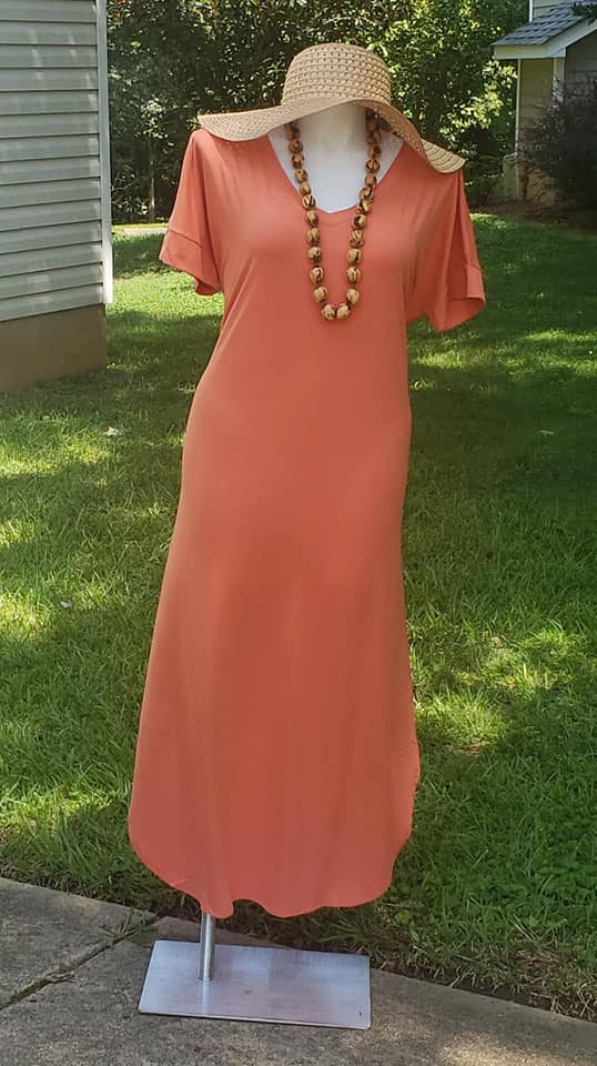 Short sleeve maxi dress. Comfortable relax loose fit. Side split for ease.